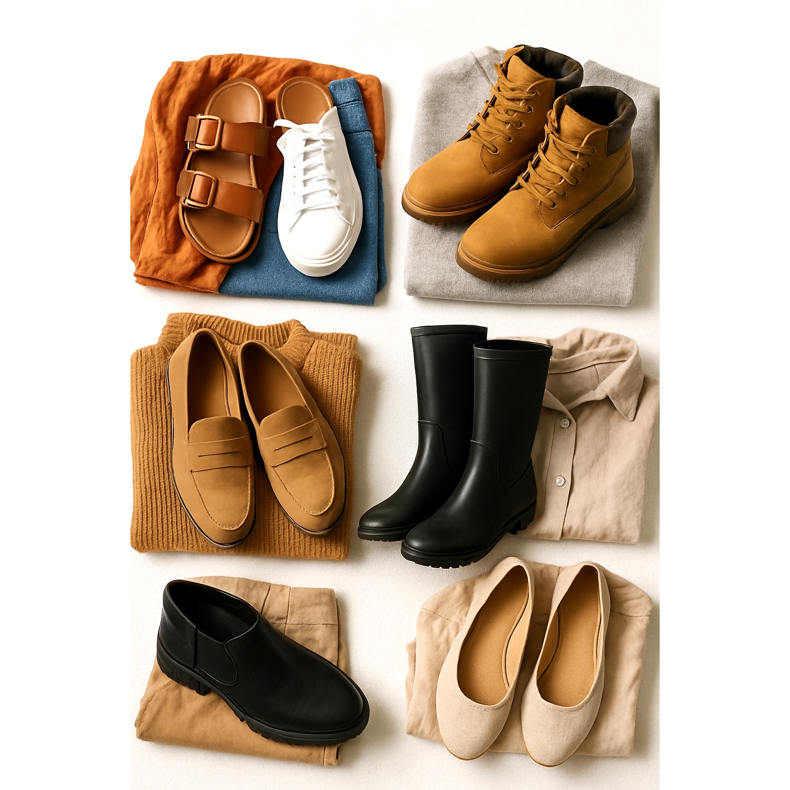 • Az egész évben alapvető darabok: 4-5 cipő mindig elérhető